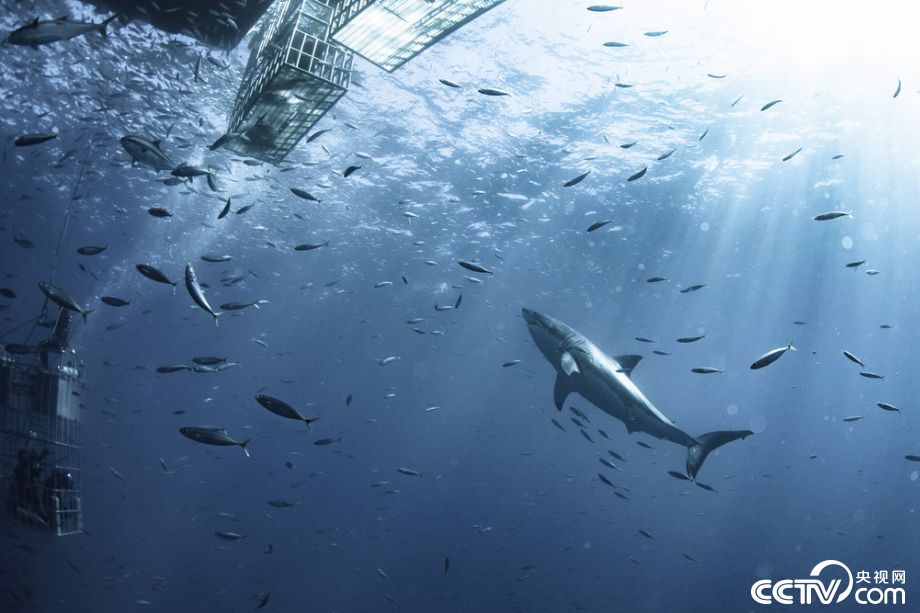 近日,墨西哥瓜达卢佩群岛,一条6米长、两吨多重的大白鲨穿过在一群亮闪闪的鲭鱼,靠近了承载着研究人员的笼子,一直绕笼子盘旋。人类体型与之相较实在不值一提。35岁的水安全专家约翰·马厄(John Maher)为一个鲨鱼研究项目拍摄了这些照片。他来自加利福尼亚州拉霍亚,乘船一天多才到达瓜达卢佩岛附近的水域,花了三天时间记录下各种大白鲨。 视觉中国