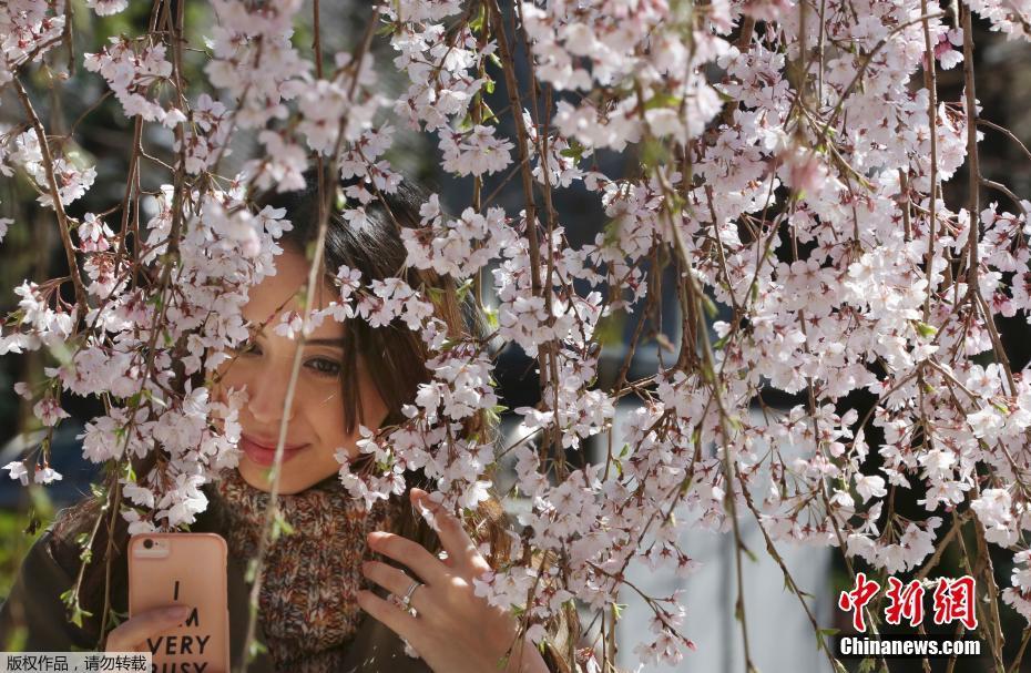日本东京提前进入樱花季 游人徜徉花海乐享美景