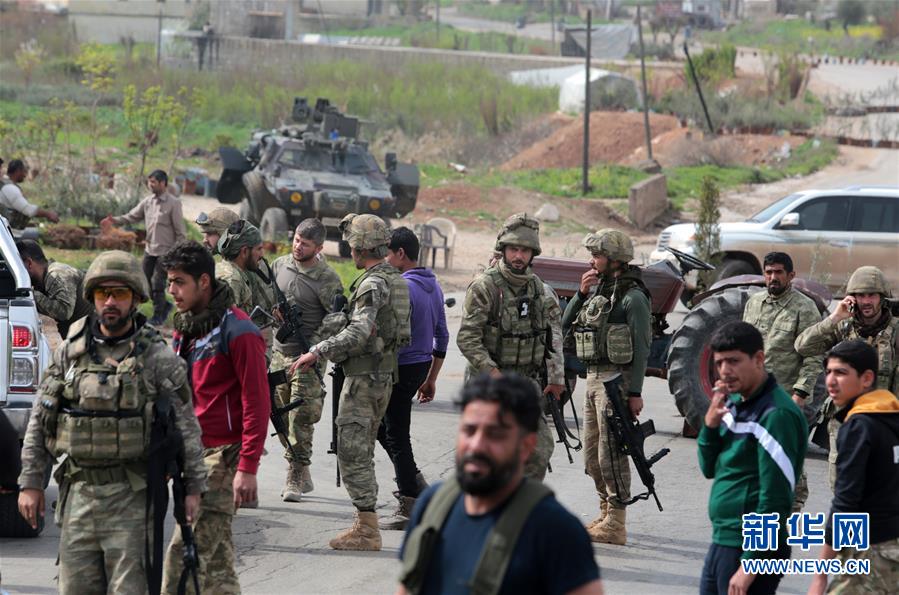 3月20日,在叙利亚阿夫林,土耳其士兵在进城检查站附近执勤。土耳其总统埃尔多安19日表示,继土耳其在叙利亚阿夫林地区的战役取得胜利后,土方将向阿夫林以东的叙利亚其他地区进军。新华社发