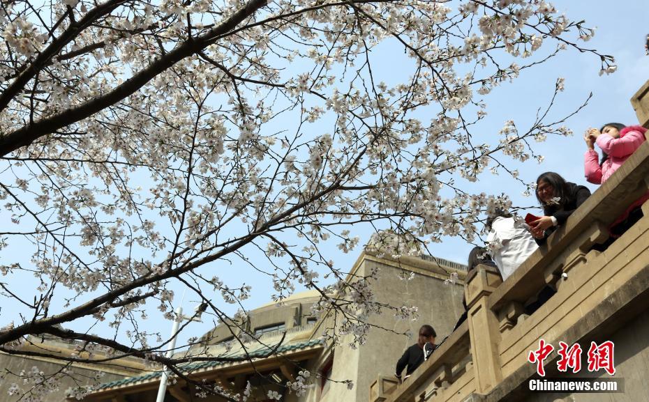 3月21日,民众在武汉大学观赏盛开的樱花。当日在武大樱花大道上,一株株灿若云霞的樱花树引来无数游客慕名而至。中新社记者 张畅 摄