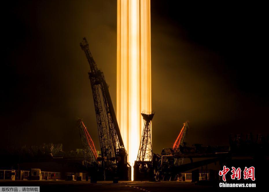 当地时间2018年3月21日,哈萨克斯坦拜科努尔,“联盟MS-08”飞船发射升空。