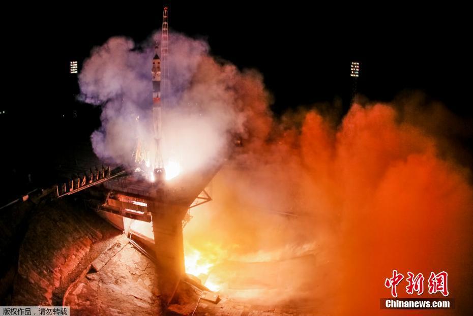 当地时间2018年3月21日,哈萨克斯坦拜科努尔,“联盟MS-08”飞船发射升空。