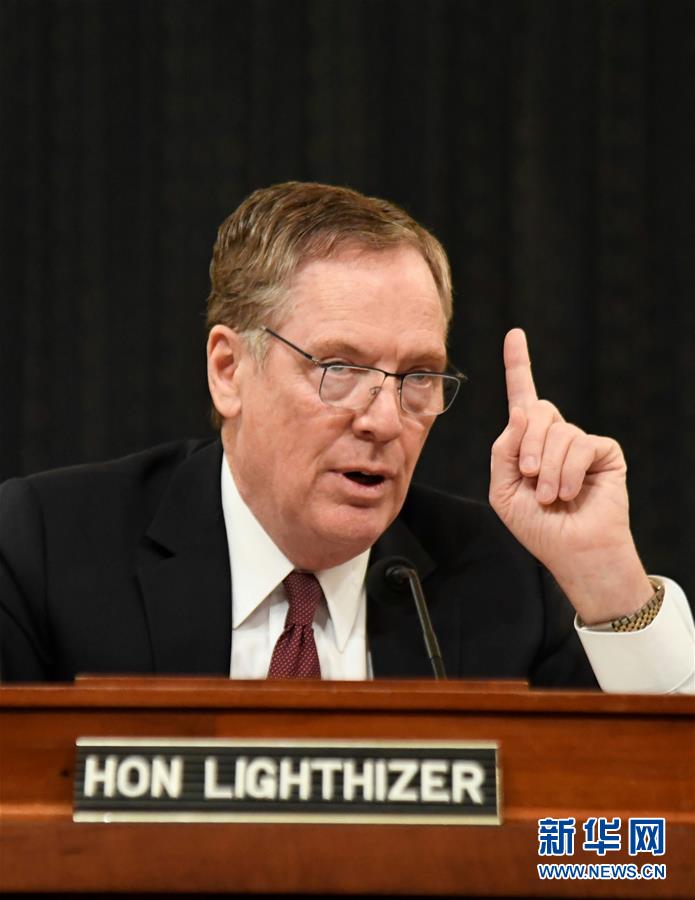 3月21日,在美国华盛顿,美贸易代表莱特希泽在国会众议院筹款委员会就特朗普政府贸易政策作证。莱特希泽21日表示,美国正与一些贸易伙伴就豁免钢铝关税进行谈判,希望到4月底能确定享受关税豁免的经济体。 新华社记者杨承霖摄