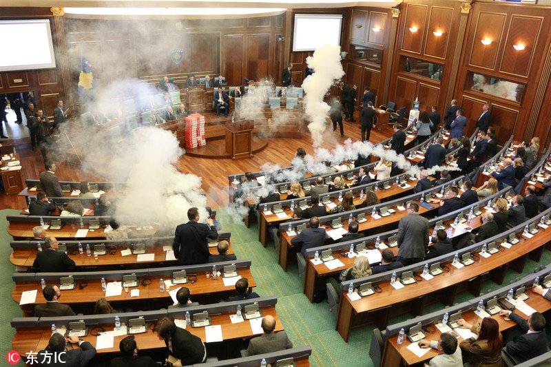 硝烟四起!科索沃议会遭反对派投掷催泪弹