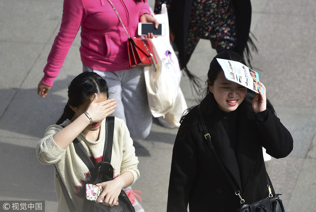 西安气温大幅回升 超短裙和羽绒服同框