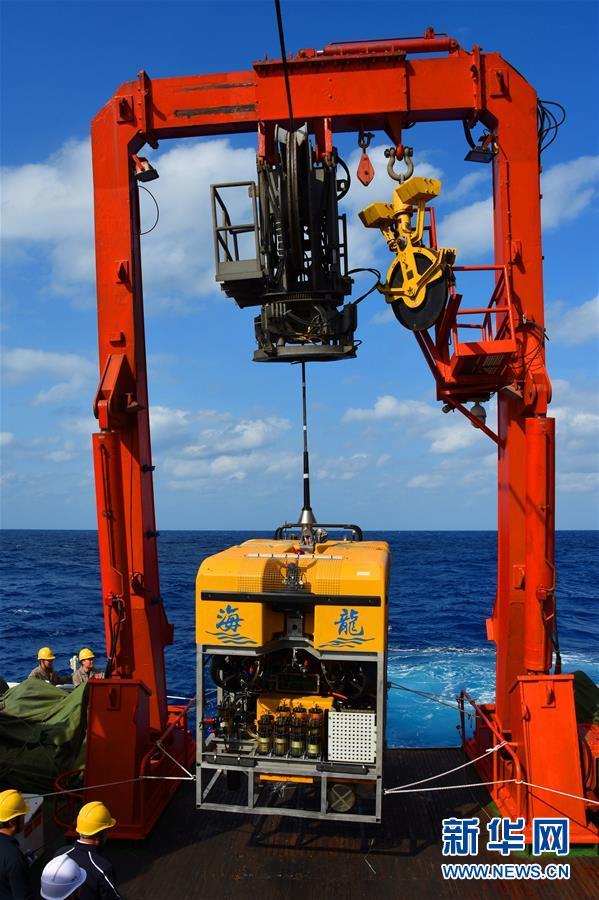 3月24日,“海龙Ⅲ”潜水器准备入水进行试验。 3月24日,中国“大洋一号”科考船上搭载的重点装备“海龙Ⅲ”潜水器在西太平洋圆满完成400米浅水试验,浅水性能得到验证。这是“海龙Ⅲ”潜水器首次进入大洋。新华社记者陈灏摄