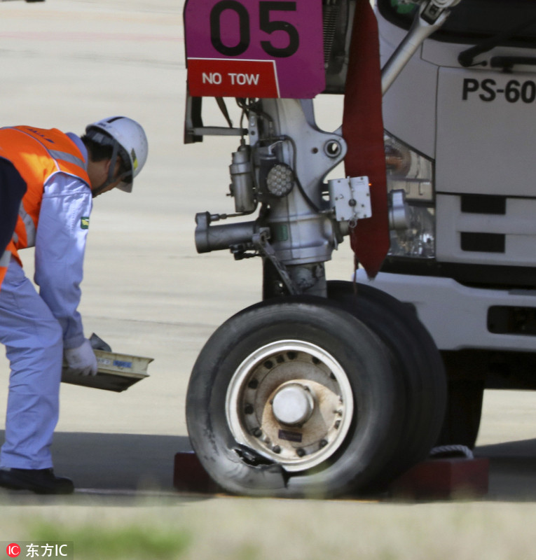 当地时间2018年3月24日,日本福冈,日本廉价航空公司乐桃航空一架载有165人的客机在降落福冈机场后,两前轮突然爆胎,飞机滞留机场跑道致使跑道被迫关闭2个多小时。