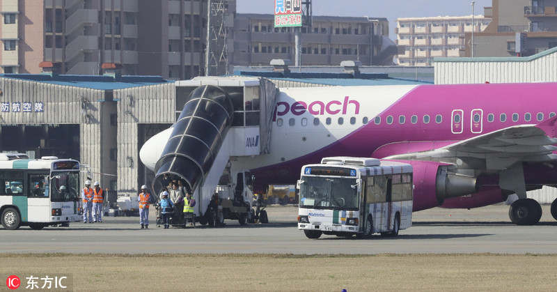 当地时间2018年3月24日,日本福冈,日本廉价航空公司乐桃航空一架载有165人的客机在降落福冈机场后,两前轮突然爆胎,飞机滞留机场跑道致使跑道被迫关闭2个多小时。