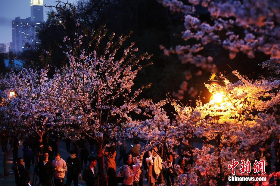 夜晚来赏花,别有一番滋味。中新社记者 泱波 摄