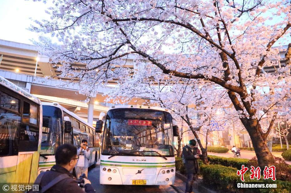 上海网红公交车站樱花烂漫 市民扎堆赶来拍摄