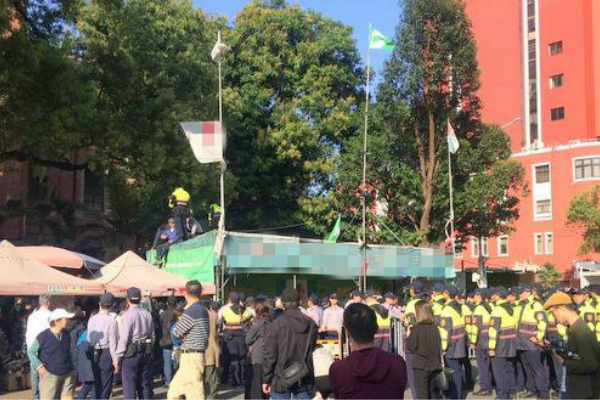 台北警方赴现场与“独派”对峙。(图片来源:中评社)