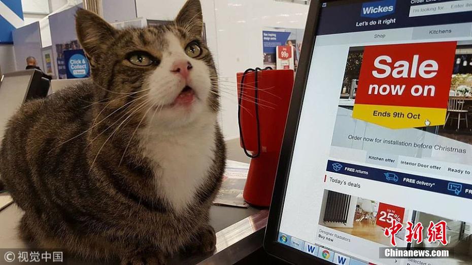 2018年3月26日讯(具体拍摄时间不详),英国牛津市比斯特镇,一只爱冒险的英国短毛猫史蒂夫每天从主人家走将近2500米到一家DIY(自制手工)商店,它无法抗拒店里汉堡诱人的香气,又被店里工作人员喂它的肉所吸引,于是开始每天“光顾”。它经常在自制产品和家居用品附近闲逛,员工们和顾客们非常喜欢这只猫。员工们甚至为他创建了一个Facebook(脸书)页面。图片来源:视觉中国