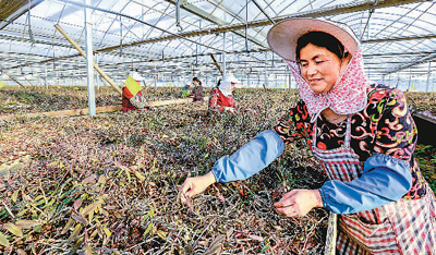 3月26日,安徽庐江县冶父山镇石斛种植扶贫产业园的扶贫车间里,农民们正在进行石斛春季管理。这个扶贫产业园是安徽省庐江县天地禾生物技术有限公司投资创办的,共帮扶贫困户120户,接纳18名贫困户土地入股,20名贫困户资金入股,吸纳21名贫困户劳动力入园就业,为49个贫困户代管家禽1052只。左学长摄(人民视觉)