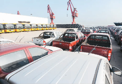 3月27日,大批车辆集结在江苏连云港港散货码头,等待装船出口国外。王 春摄(人民视觉)
