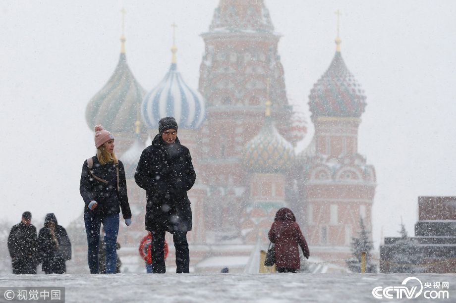莫斯科迎来大雪天气 民众聚集红场赏雪