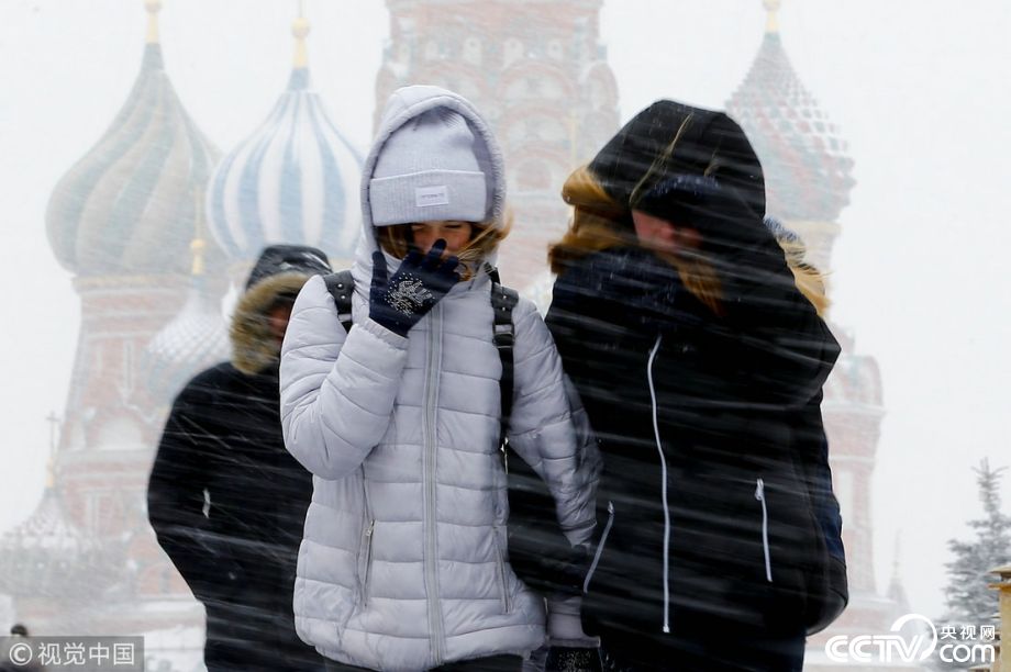 莫斯科迎来大雪天气 民众聚集红场赏雪