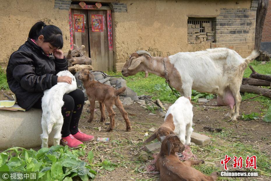 中午11点左右,鲁梦真赶着羊回到家中,她要开始给爷爷做饭。奶奶外出打零工挣钱,爷爷都是她照顾。图片来源:视觉中国