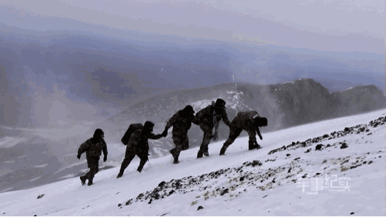 官兵们穿梭在风雪交加的巡逻路上。