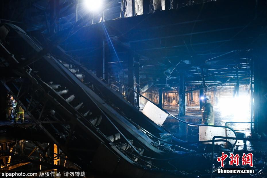 俄罗斯失火购物中心内部 曾经繁华商场一片废墟