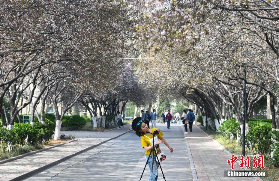 3月27日,民众“花街”留影。 中新社记者 张勇 摄