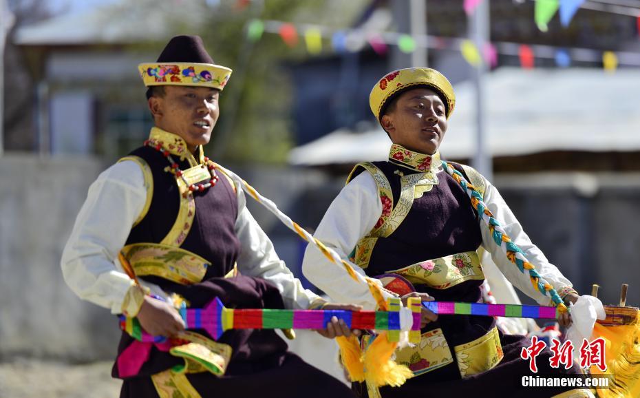 3月28日,西藏林芝民众弹奏扎木念琴。当日是西藏百万农奴解放59周年纪念日,西藏多地举行庆祝活动。 中新社记者 周文元 摄