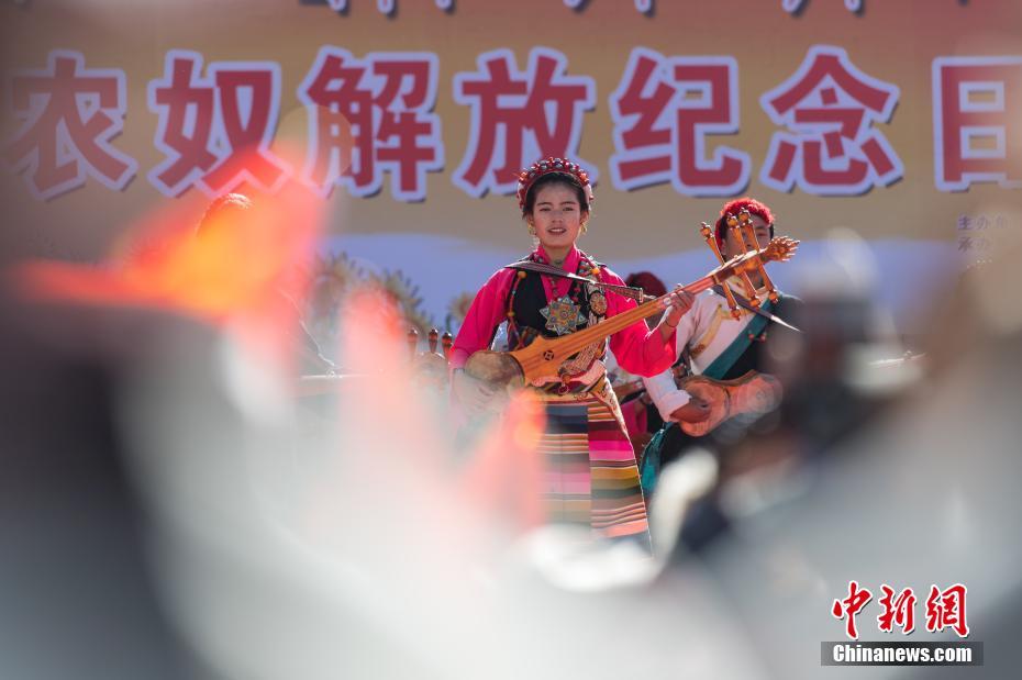 今年的3月28日,是西藏百万农奴解放59周年。西藏各族各界群众通过开展形式多样的活动,纪念第9个西藏百万农奴解放纪念日。2009年,西藏自治区九届人大二次会议决定,将每年3月28日定为西藏百万农奴解放纪念日。 图为拉萨宗角禄康公园举行庆祝“西藏百万农奴解放纪念日”文艺演出。 何蓬磊 摄