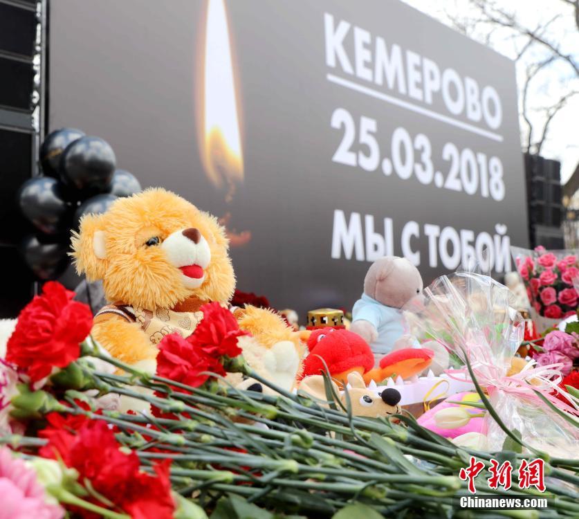 当地时间3月28日,俄罗斯迎来全国哀悼日。当天所有文化娱乐场所停止一切公共娱乐活动,电视广播也停播娱乐节目。莫斯科民众自发前往市中心的马涅什广场,为遇难者献上鲜花、气球和毛绒玩具等物品。本月25日,俄罗斯西伯利亚南部城市克麦罗沃一家名为“冬季樱桃”的购物中心发生火灾,造成64人死亡,其中不少遇难者是儿童。 中新社记者 王修君 摄