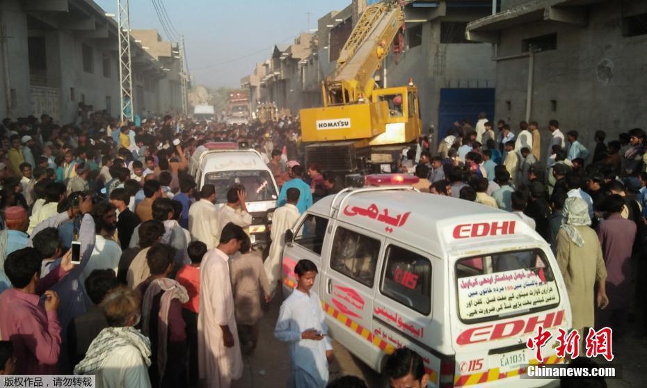 巴基斯坦一仓库屋顶坍塌 数十人被埋