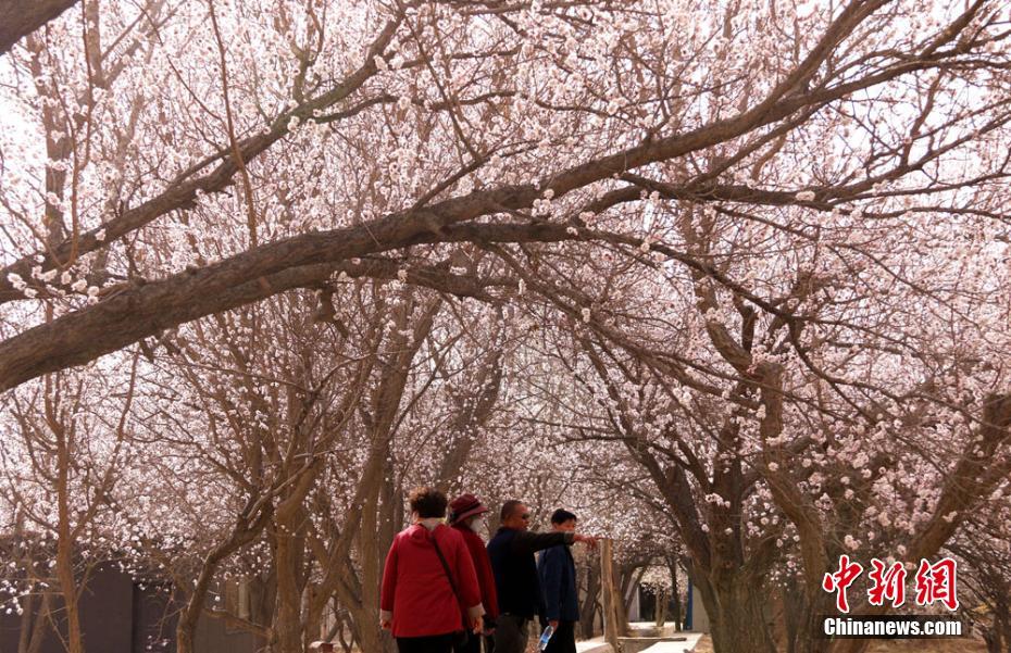 敦煌鸣沙山下李广杏花盛开 千亩花海引客踏青赏春