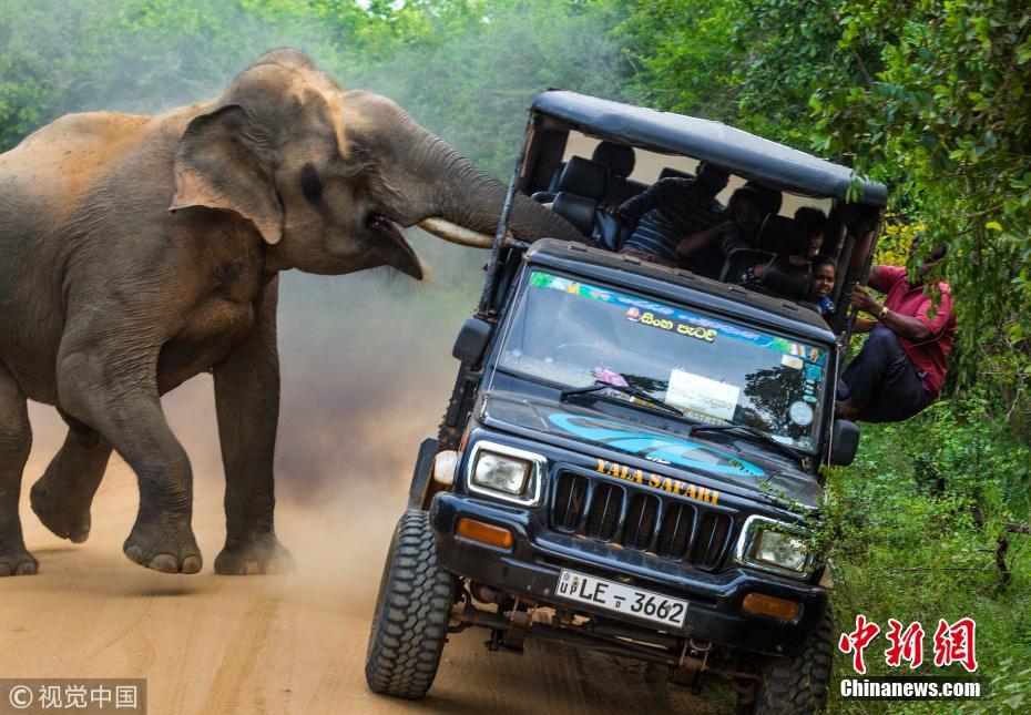 斯里兰卡亚洲象拦车“求喂食”险将车推翻