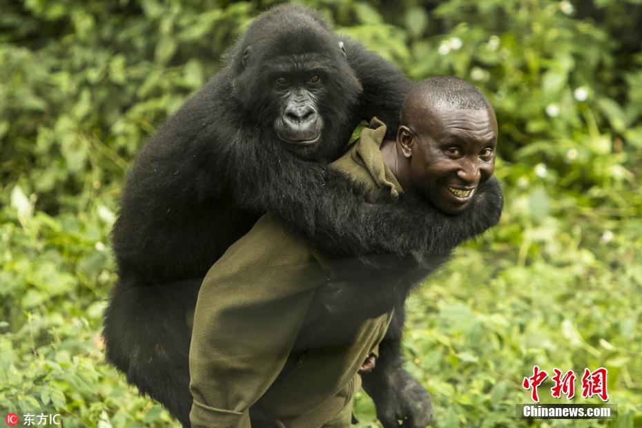 在Andre身边,它们像是粘人的小屁孩,有个别厚脸皮的家伙不顾自己的体重,爬到Andre的背上撒娇。图片来源:东方IC 版权作品 请勿转载