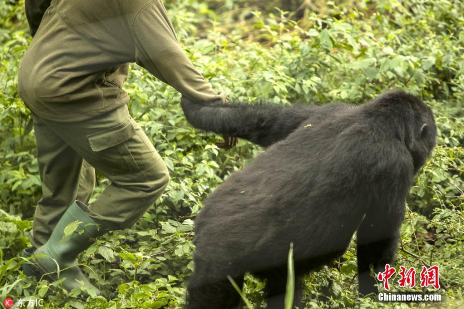 大猩猩主动拉着饲养员散步。摄影师James Gifford用镜头记录下了这暖心的一幕幕。图片来源:东方IC 版权作品 请勿转载