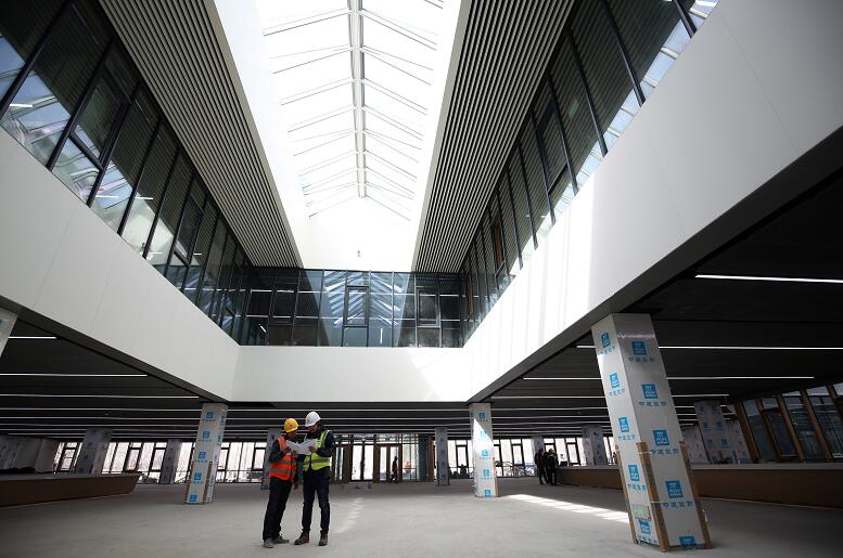 市民服务中心七大建筑单体中,会议培训中心、政务服务中心均为雄安首例被动式建筑,以真正超低能耗、节能环保诠释绿色雄安理念。所谓被动式房屋,通俗讲是“一个完全没有冷气和暖气的房子”,平时只依赖建筑外壳做遮阳和隔热,冬天则通过吸收太阳辐射热进行保暖,并通过新风系统的高效热(冷)回收装置,将室内废气中的热(冷)量回收利用,从而显著降低建筑的采暖和制冷需求,具有极高的节能环保优势。(摄影:海外网 谢明)