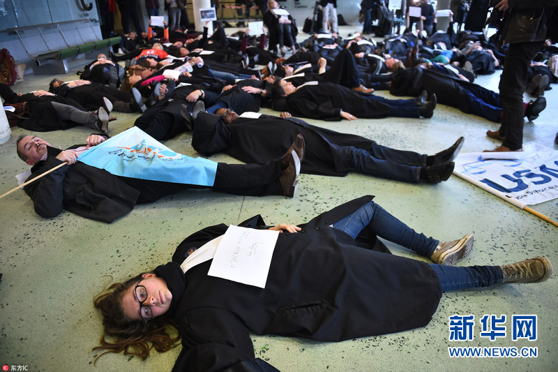 法国约50名律师"躺尸"抗议 反对司法改革