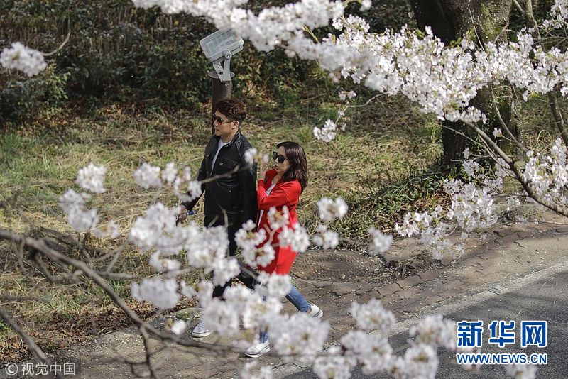 3月30日,韩国河东郡,当地樱花盛开,吸引游人观赏。(图片来源:视觉中国)