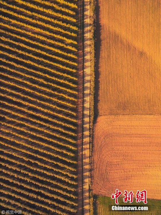 航拍西班牙田野艳丽美景 色彩柔美如缎带