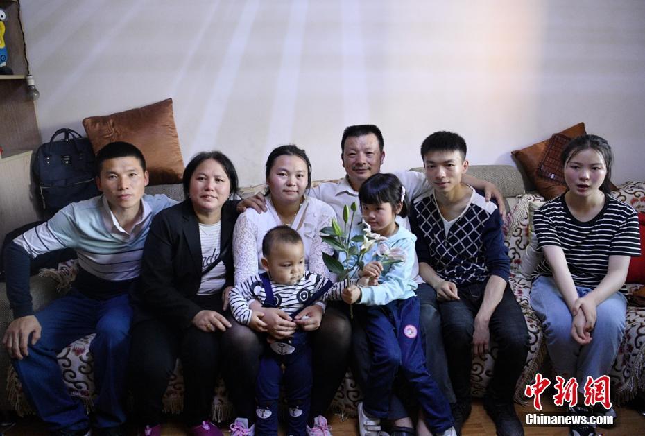 接到女儿后,王明清一家拍摄了全家福。 刘忠俊 摄