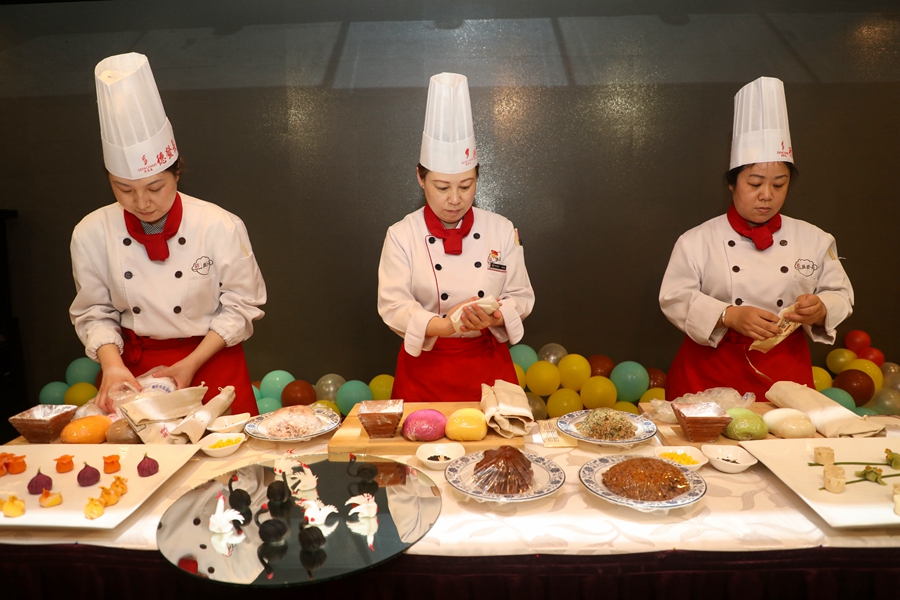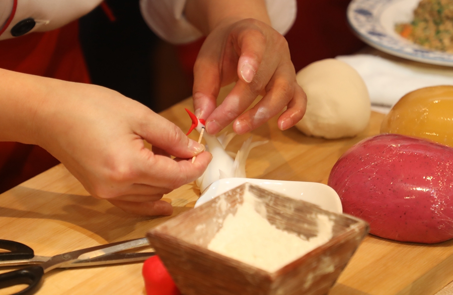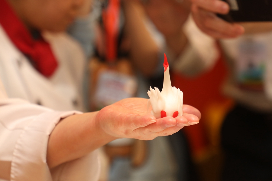 西部网讯(记者 陈婷婷 摄影 赵昊) 栩栩如生的瑶池天鹅、孔孔分明的出水莲蓬、惟妙惟肖的戏水金鱼、生动形象的月色蛙鸣……乍一看,让人以为来到了雕塑展览。这些造型新奇、花样百出的“艺术品”,实际上就是人们平日里爱吃的饺子,它们均出自德发长面点大师之手。