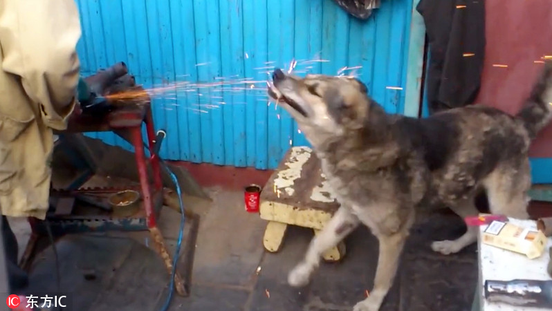 厉害了二狗子!外国狗狗狂吃电锯花火超惊险