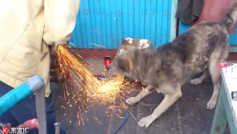 厉害了二狗子!外国狗狗狂吃电锯花火超惊险