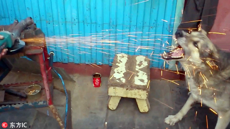 厉害了二狗子!外国狗狗狂吃电锯花火超惊险