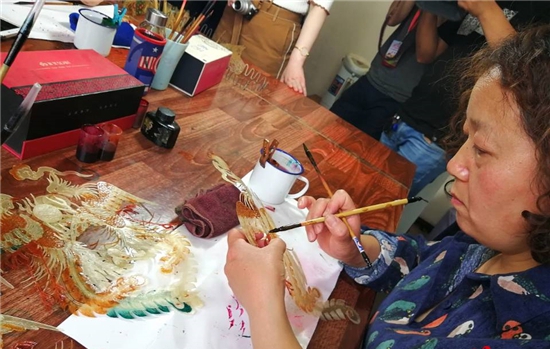 在我抵达华州皮影传习馆的大厅时,我就已经被华州皮影征服了。传习馆大厅的墙上挂着许多带框的画像,粗看像中国的剪纸,但细细再看就会发现,这些画像做工精细,而且色彩丰富。那么这些画像与皮影戏又有什么关系呢?我从这个皮影传习馆了解到,这些画像其实就相当于华州皮影的一张张名片,向世人讲述华州皮影背后的制作故事和理念。这里没有木匠葛佩托在制作匹诺曹的兄弟木偶,而是十几名手工匠人合力制作华州皮影戏的主角——一张张牛皮制成的人或动物形象。