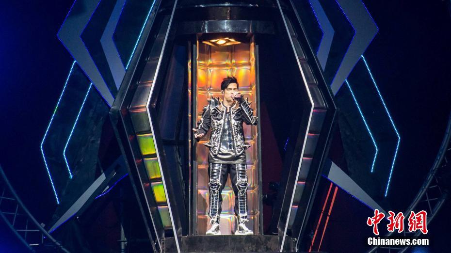 4月7日晚,周杰伦“地表最强”世界巡回演唱会澳大利亚站在悉尼举行。图为周杰伦在演唱会上表演。中新社发 陈路 摄