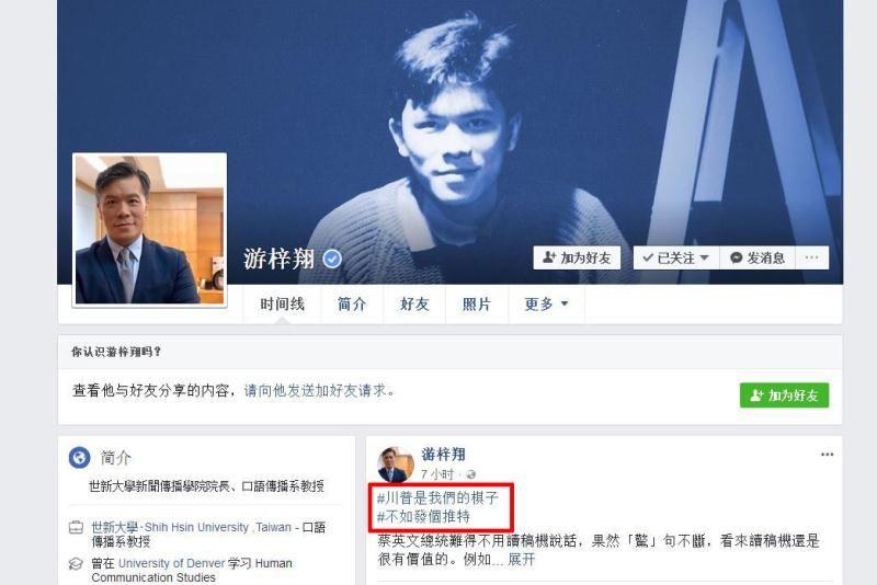 在游梓翔的致歉脸书下,有台湾网友称赞他是条汉子,有人批评媒体乱写,也有人留言说,“川普爸爸听见这个说法会不高兴,只能赶快消毒”。