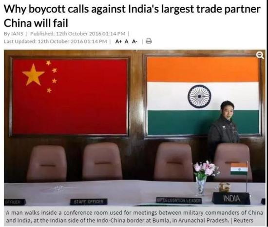 《新印度快报》曾发表题为《为何抵制印度最大贸易伙伴中国的呼吁会失败》的文章,里面提到,“印度的数据提供机构“印度消费”(Indiaspend)的分析报告表明此举必将失败:因为中国是印度最大的贸易伙伴,现在印度六分之一进口产品来自中国。”“制造业部门的停滞不前的指数表明印度仍在艰难地与中国竞争。”