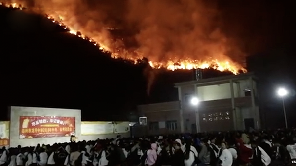 山上着火 山下学校淡定开中考动员会
