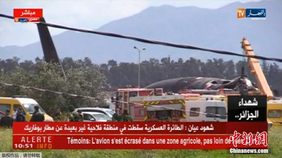 当地时间4月11日,阿尔及利亚一架载有约200名士兵的军用飞机在该国首都附近坠毁。目前具体的伤亡数字尚未公布,但有媒体报道称,事故恐造成数十人甚至200人伤亡。(电视截图)