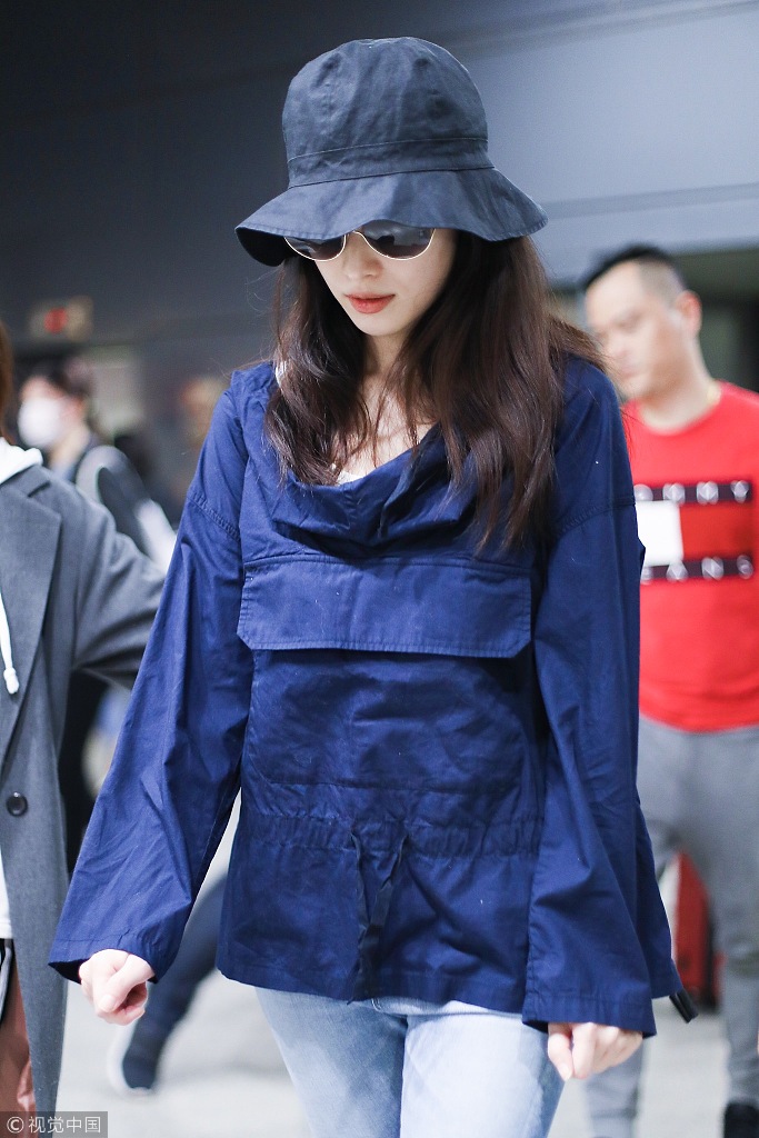 2018年4月11日,上海,倪妮现身机场。 她戴渔夫帽低头疾走获助理护驾,玩心大起做搞怪表情俏皮十足。