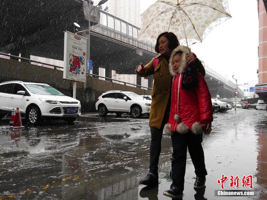 受冷空气影响,4月11日中午时分,乌鲁木齐市开始下起小雪,截至目前降雪仍在持续,气温也随之下降至零度左右。为躲避寒冷,街上行人打起雨伞脚步匆匆,一些行驶车辆打开车灯缓慢通行。新疆气象台16时许发布天气预报称,乌鲁木齐今天夜间小雪转多云,明天白天晴间多云,最高气温7℃,最低气温-1℃。戚亚平 摄