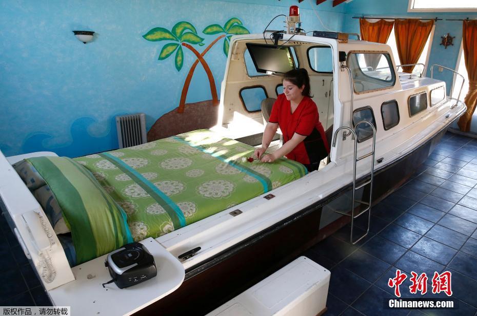 走进船屋内部,工作人员正在“船上”收拾床铺。